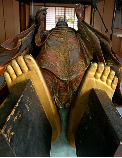 Vua Udayibhadra có một đứa con trai, Kumara Shaktiman, người muốn trở thành vua. Mẹ ông nói rằng ông không thể làm vua cho đến khi nào Long Thọ qua đời, vì Long Thọ và nhà Vua có cùng thọ mạng. Mẹ ông bảo ông đi xin thủ cấp của Long Thọ, và vì là người rất từ bi, chắc chắn ngài sẽ đồng ý. Long Thọ thật sự đã đồng ý, nhưng Kumara không thể chặt đầu của ngài bằng gươm. Long Thọ nói trong một tiền kiếp, ngài đã giết một con kiến trong khi cắt cỏ. Vì nghiệp quả này, chỉ có lá cỏ Kusha mới cắt đứt đầu của ngài. Kumara làm theo lời ngài và Long Thọ qua đời. Máu từ thủ cấp đã lìa khỏi thân ngài trở thành sữa và cái đầu của ngài nói, “Bây giờ, ta sẽ đến Tây Phương CựcLạc (Sukhavati Pure Land), nhưng ta sẽ nhập vào thân này lần nữa.” Kumara đem chiếc đầu đi thật xa thân thể, nhưng người ta nói mỗi năm, chiếc đầu và thân ngài càng đến gần nhau hơn. Khi chúng sát nhập lại với nhau, ngài Long Thọ sẽ quay trở lại và giảng dạy lần nữa. Tổng cộng, ngài đã sống sáu trăm năm.